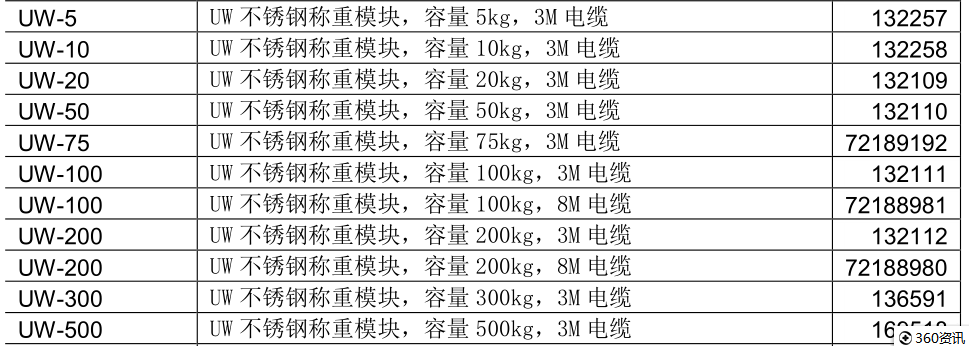 UW-300 UW不銹鋼稱重模塊,容量300kg,3M電纜