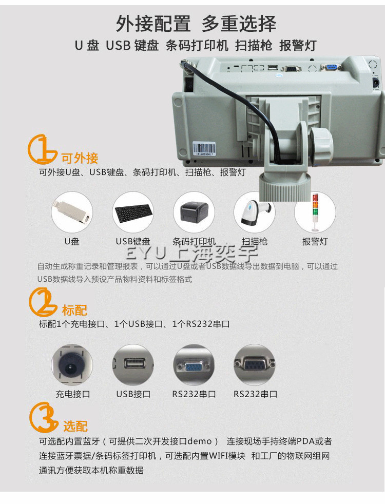 10. 多種擴展接口,可外接打印機,掃描槍,報警燈等