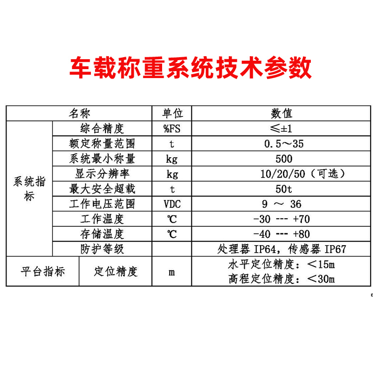 集裝箱運輸車車載稱重系統(tǒng)系統(tǒng)指標