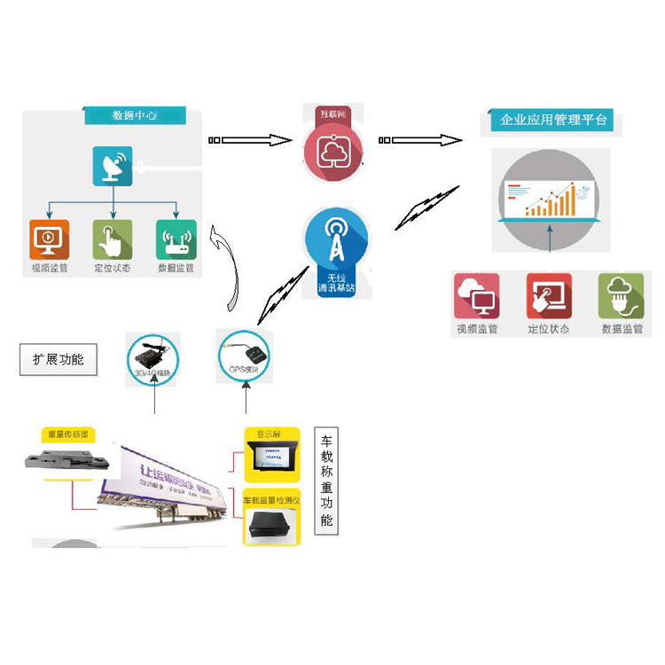 該系統(tǒng)將傳感器采集的車載重量信號實時進行計算、處理及上傳,通過車聯(lián)網(wǎng)平臺實現(xiàn)企業(yè)和監(jiān)管機構(gòu)的數(shù)據(jù)管理和運輸管理的職責。
