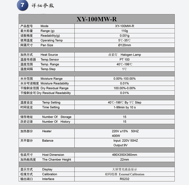 1.德國HBM傳感器 2.新一代鹵素?zé)艏訜?3.全新溫控傳感器 4.快速測量水分百分比 5.雙層全不銹鋼加熱倉、鋁殼底座、耐高溫材料 6.雙紙箱+型腔泡沫包裝